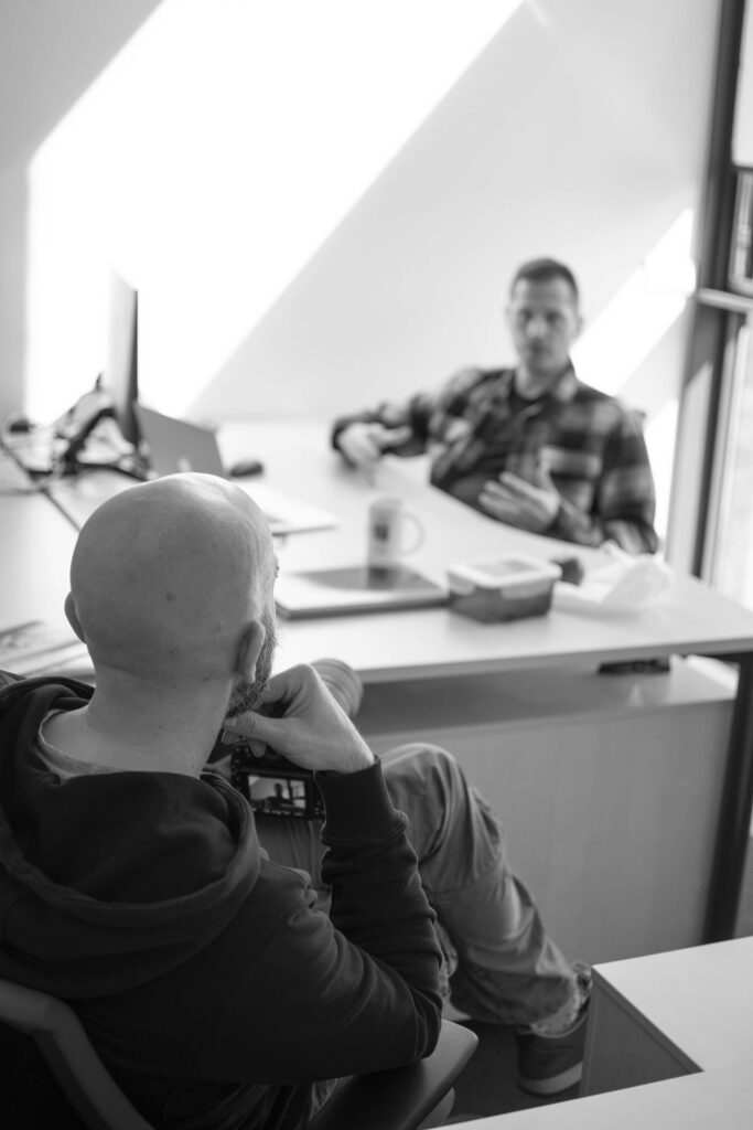 Beim Fotografieren zählt vor allem der Dialog mit den Menschen. Wir geben alles, damit sich eure Mitarbeiter während des Shootings wohlfühlen und auf die Bilder freuen.